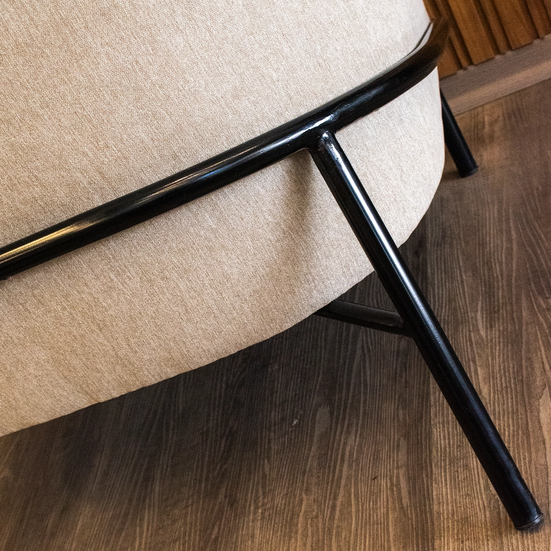 El diseño se complementa con patas de hierro, que aportan firmeza estructural y un carácter moderno e industrial. Este contraste entre la calidez de la pana y la sobriedad del hierro genera una presencia equilibrada, perfecta para integrarse en ambientes de estilos diversos.