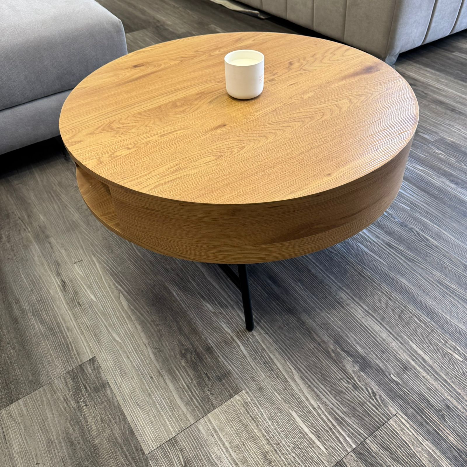 La Mesa Ratona Bristol combina diseño moderno, funcionalidad y calidez en una pieza ideal para livings contemporáneos. Su formato circular y su acabado en símil madera aportan una estética natural que se integra fácilmente con diferentes estilos de decoración.