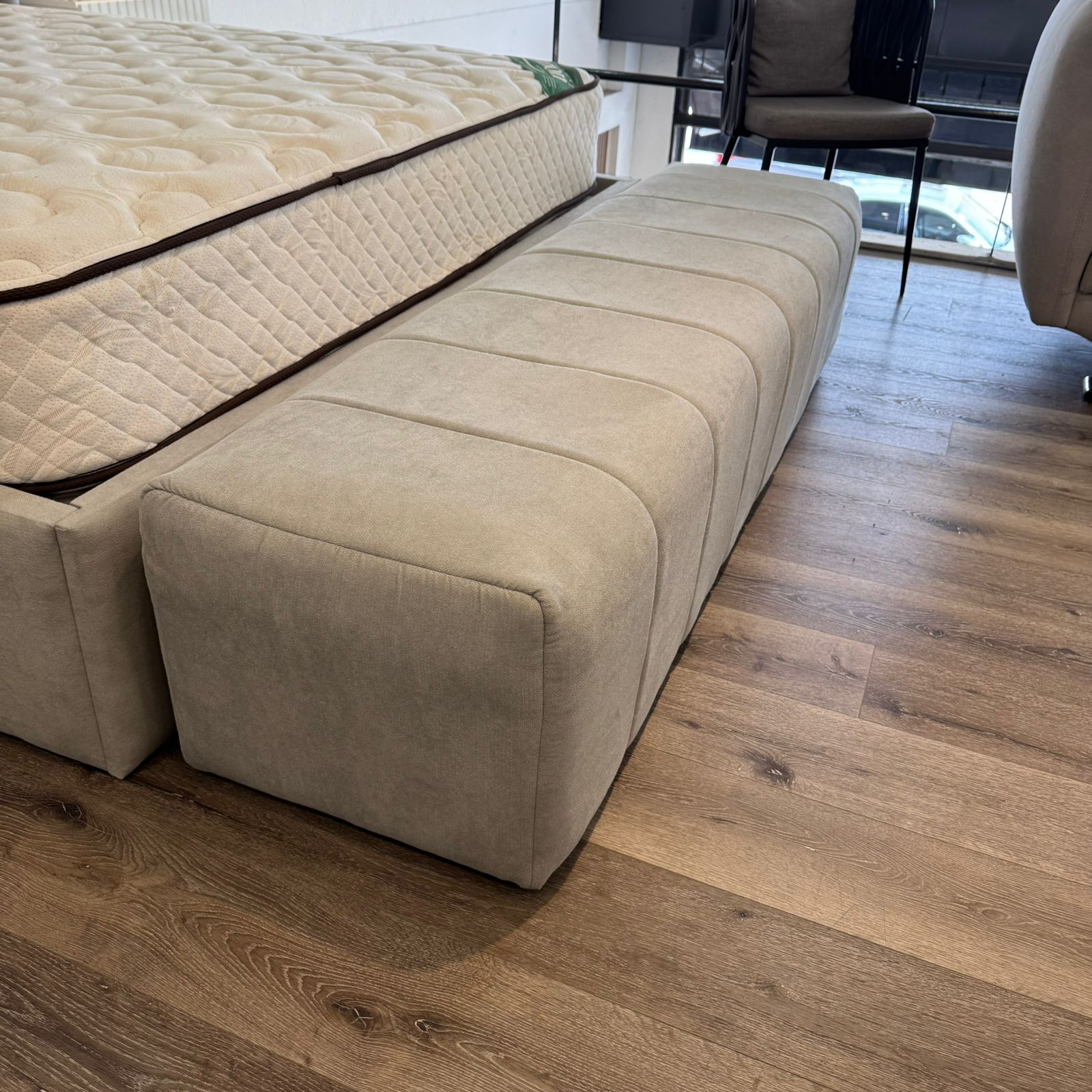 Pie de cama tapizado en pana, ideal para sumar calidez, diseño y funcionalidad al dormitorio. Su estética moderna con costuras verticales genera un efecto visual elegante y aporta textura, convirtiéndolo en un complemento perfecto para acompañar la cama y completar el ambiente. La estructura es firme y resistente, pensada para el uso diario, mientras que la pana brinda una terminación suave al tacto y de gran calidad, fácil de combinar con distintos estilos de decoración.