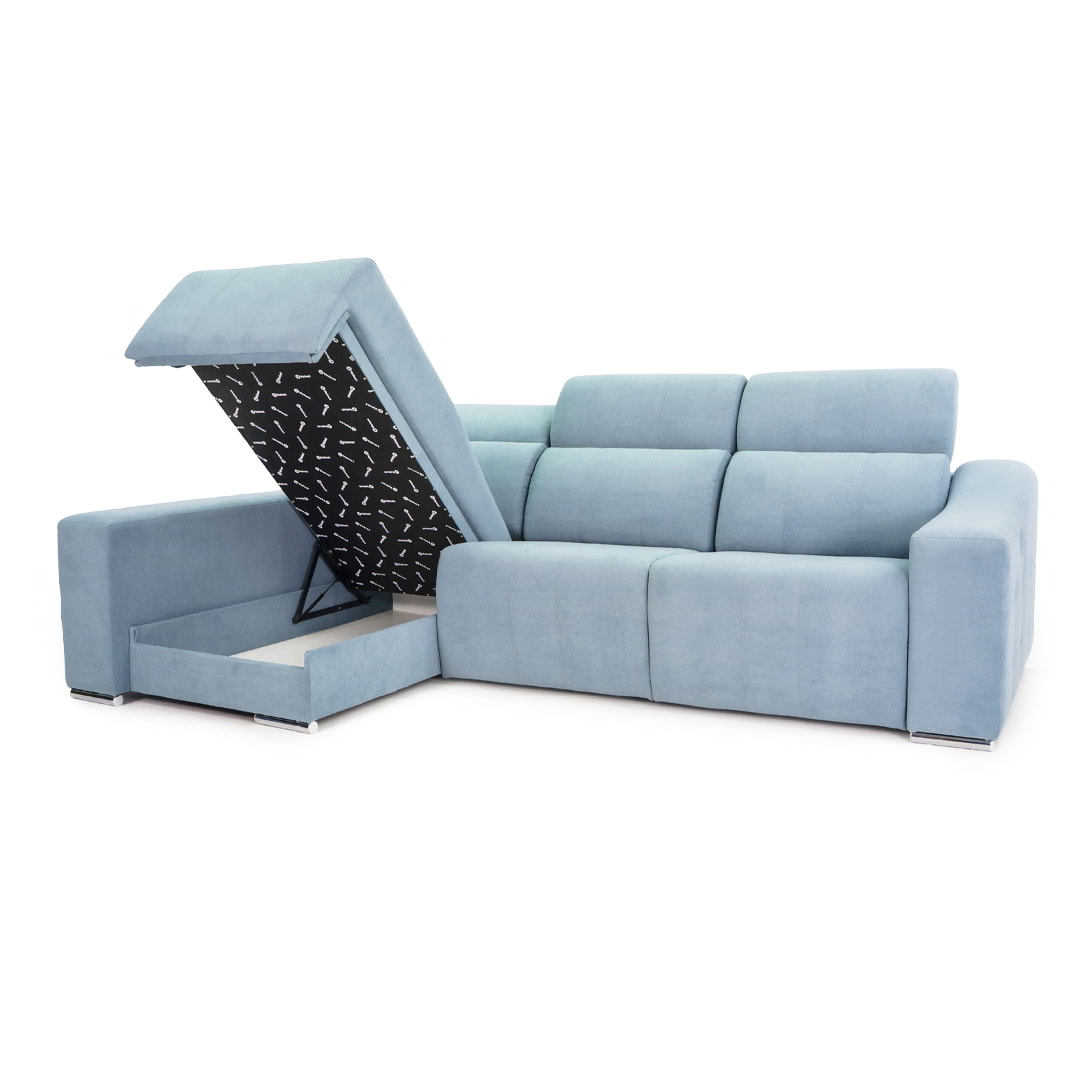 El módulo chaise longue incluye un baúl oculto de gran capacidad, ideal para almacenamiento discreto, sin comprometer la estética.