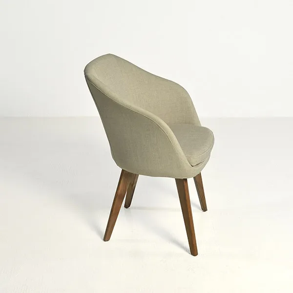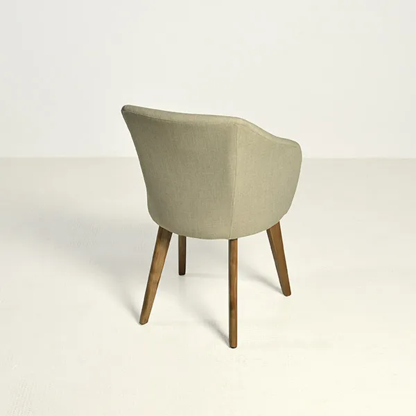 Silla con patas de madera lustrada. Asiento y respaldo tapizado.